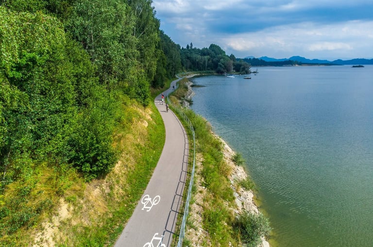 Velo Czorsztyn to malownicza ścieżka pieszo-rowerowa, która rozciąga się wzdłuż brzegów Jeziora Czorsztyńskiego. Ta trasa ma długość około 27 kilometrów, oferując niesamowite widoki na okoliczne góry i jezioro. Ścieżka jest idealna zarówno dla pieszych, jak i rowerzystów, co czyni ją popularnym miejscem wypoczynku wśród turystów i mieszkańców. Wzdłuż trasy znajdują się liczne punkty widokowe, miejsca do odpoczynku oraz atrakcje turystyczne, takie jak zamek w Czorsztynie. Dzięki swojej atrakcyjnej lokalizacji i łatwości w dostępie, Velo Czorsztyn przyciąga osoby w różnym wieku, które pragną spędzić czas aktywnie na świeżym powietrzu.